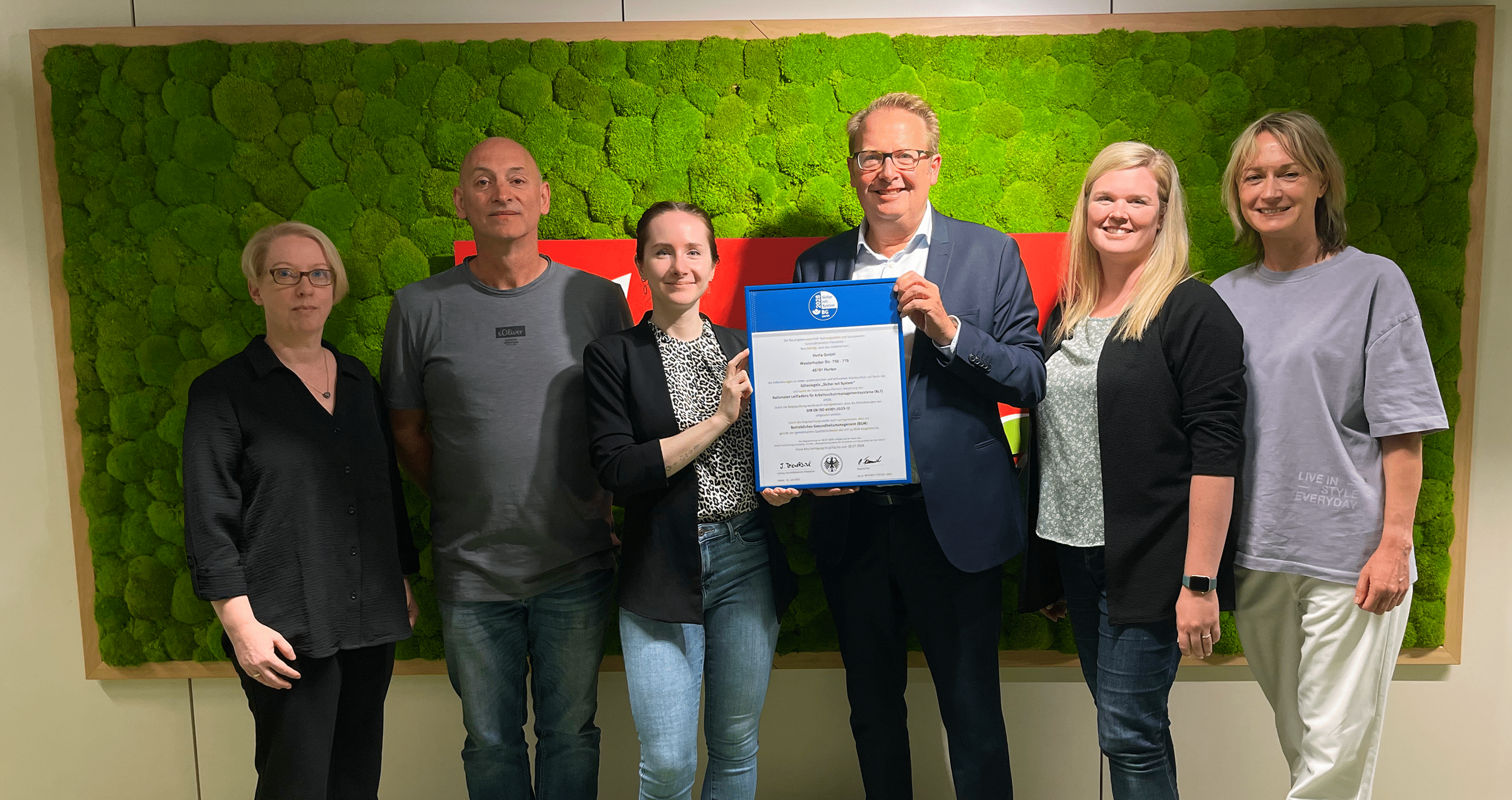 Geschäftsführer Johannes Kölker hat die Urkunde Ende August in Herten in Empfang genommen. Vorausgegangen war dem Termin eine freiwillige, unabhängige Prüfung durch die BGN im Juli dieses Jahres. Für Herta ist es bereits die zweite Auszeichnung mit dem Siegel „Sicher mit System“. Erstmals ist Herta damit 2021 wegen seiner hohen Standards im Arbeits- und Gesundheitsschutz prämiert worden. Das neue Siegel ist drei Jahre gültig.