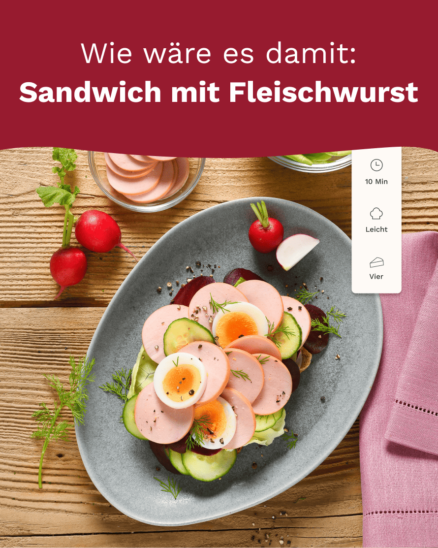 Schonend mit Buchenholz geräuchert, erhält unser beliebter Klassiker sein würziges Aroma und seinen herzhaften Geschmack. Wunderbar saftig und fein abgeschmeckt ist unsere traditionelle Herta Fleischwurst immer ein Genuss – ganz egal ob kalt oder warm.